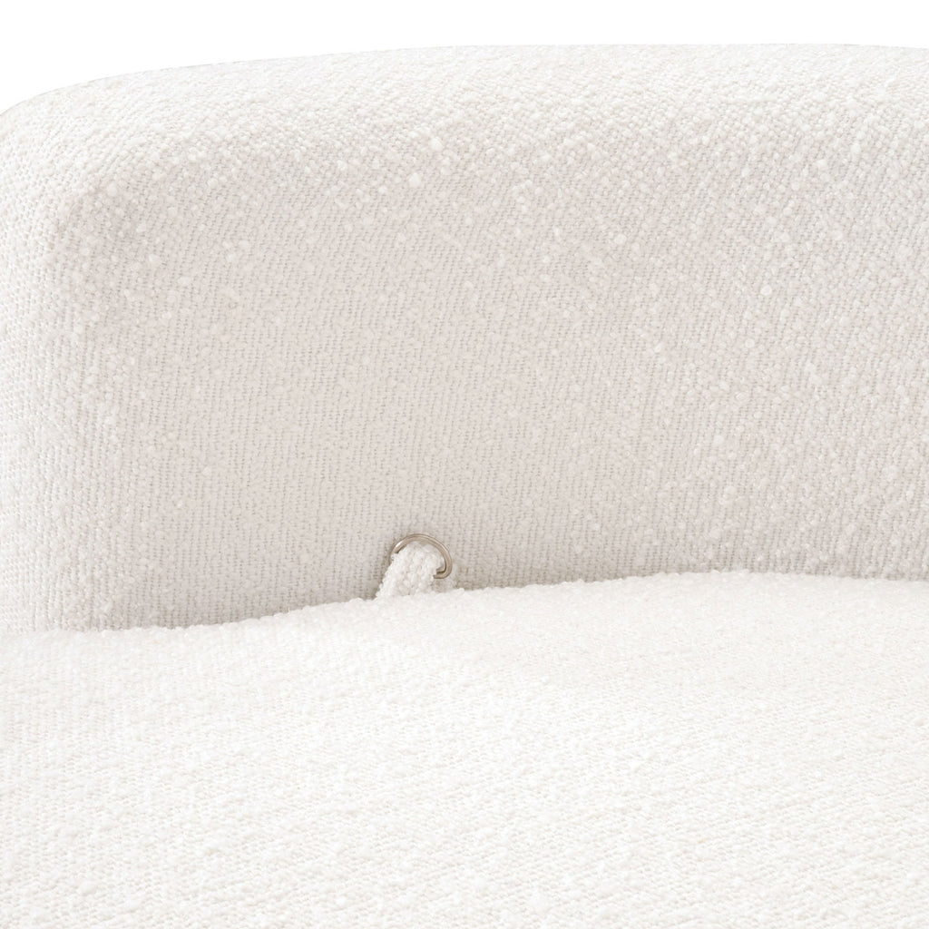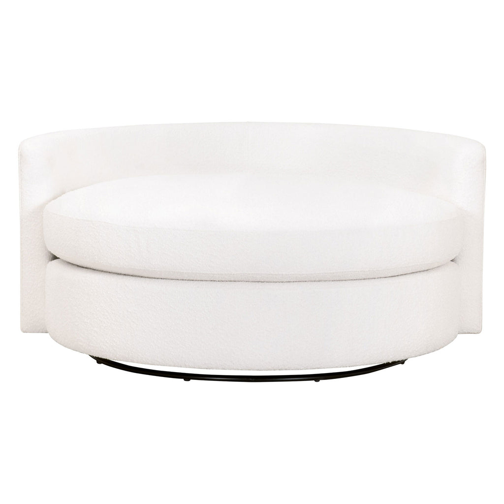 The posh Essentials for Living Lourne Grand swivel sofa seat is the perfect place to nestle into. With its wide and deep frame, curling up and settling in will be a delight. The uniquely curved design resembles a modern style that will elegantly round out any room. It is crafted with a sinuous spring construction and upholstered with a snow boucle performance fabric. The performance fabric is stain-resistant, making it easier to clean and stay tidy. It contains a 360-degree swivel base for moving about and viewing all corners of the room at your convenience. It also includes three throw pillows filled with 100% down to cozy up to.