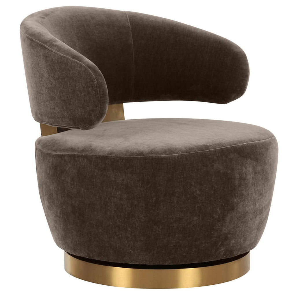 Plush, stylish, and bold, the Austin chair is an undeniably unique piece. Its soft and cozy recycled fabric upholstery complemented with brushed gold finishes is timeless and inviting. This eye-catching chair will add a pop of style to any space.