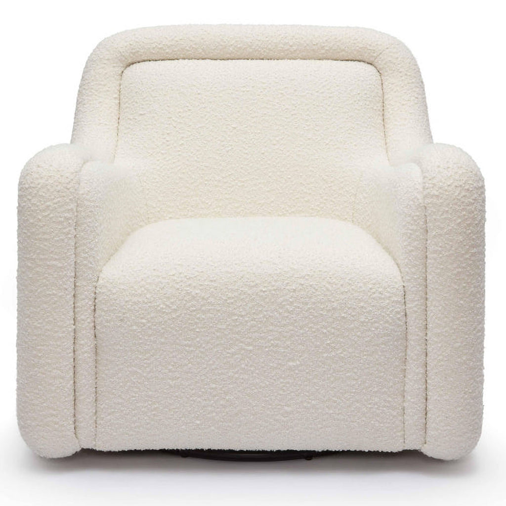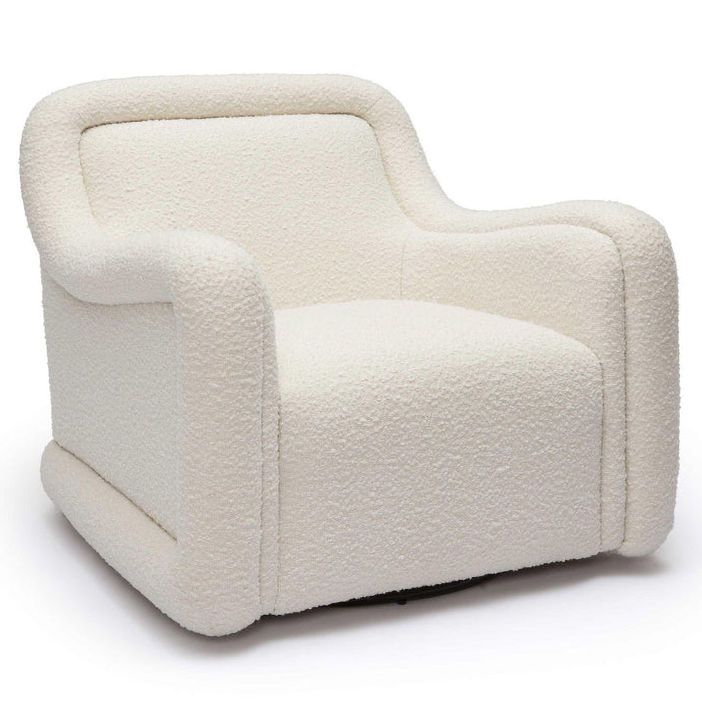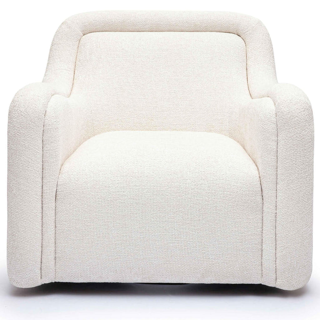 Sink into the embrace of the Charli Swivel Chair, where form meets function in the most inviting way. Available in your choice of two soft boucle fabrics or a textured basketweave chenille, this chair offers a cozy, elevated feel that is as durable as it is beautiful. Its contract-grade fabrics are easy to clean, making it a perfect fit for busy spaces. With bold tubular arms and sensual curves, the Charli Swivel Chair invites you to spin into style and comfort; every moment, effortlessly chic.