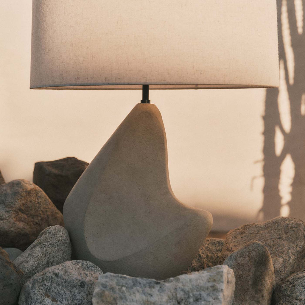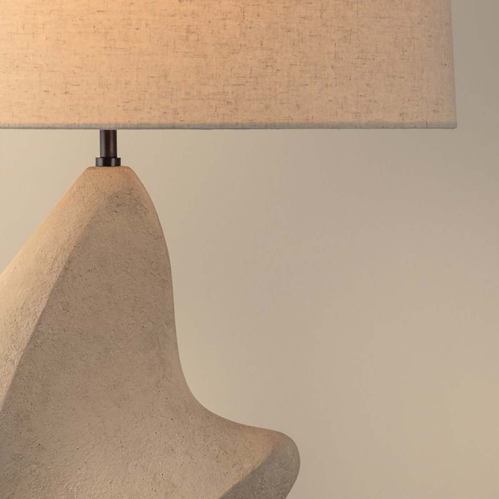 Inspired by outdoor stone relics that evolve both physically and symbolically over time, the Chandler McLellan x Troy Lighting Huntly lamp taps into an ancient vernacular while staying grounded in its refined, polished form. The concave cut-outs on the front and back create an evocative relief reminiscent of surfaces worn smooth by flowing water. Sculpted from matte ceramic with an overscale natural linen shade, this lamp serves as a conversation piece in any space. Part of our Chandler McLellan collection.