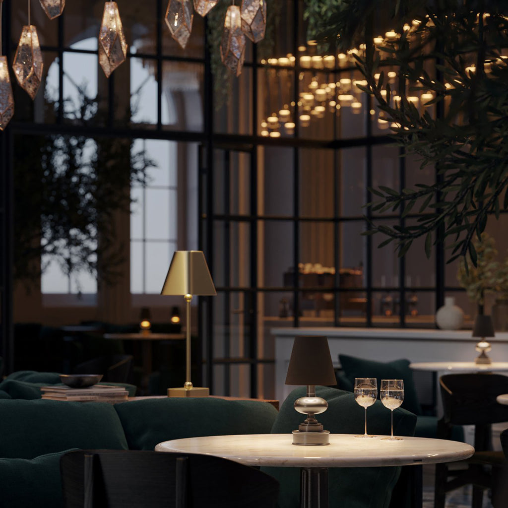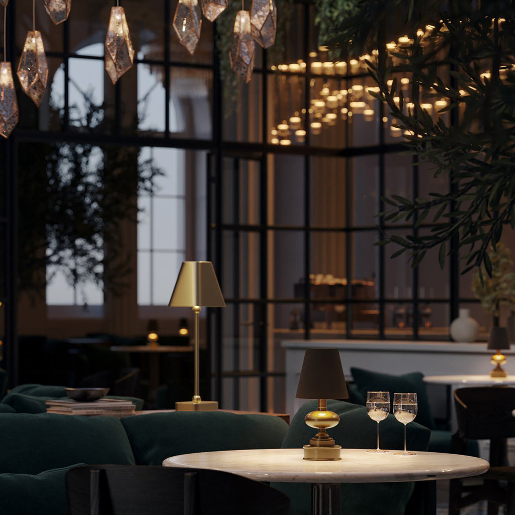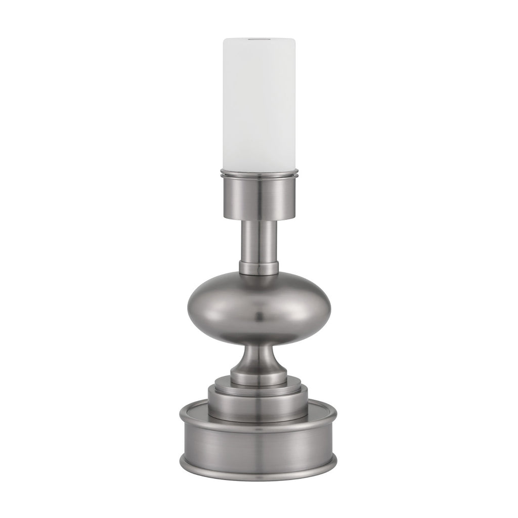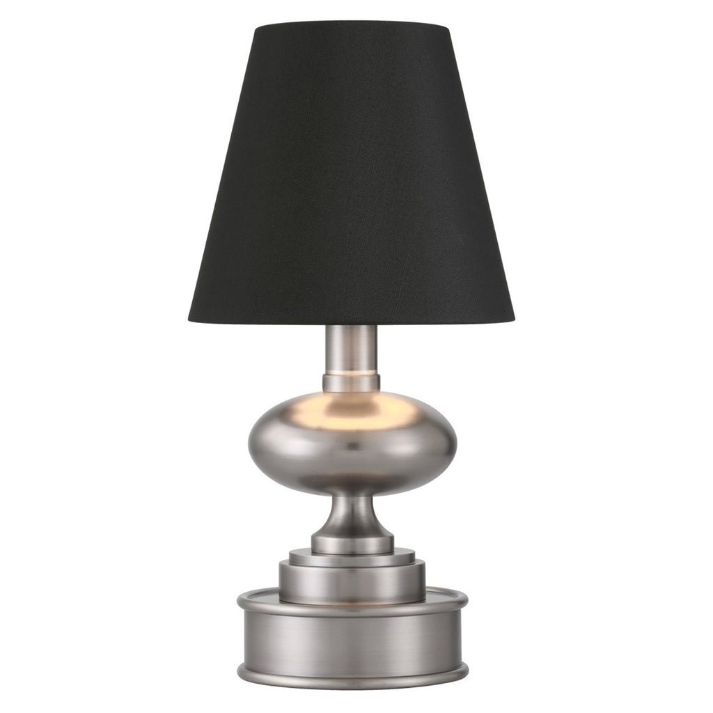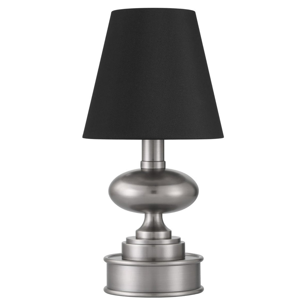 The Currey & Co Galavant Brass Cordless Table Lamp is a petite gold lamp that makes movement a breeze. The rechargeable bulb sits atop the metal body in a polished brass finish and the black shantung shade slides seamlessly over it. The on/off switch is on the top of the bulb, and the shade has a gold foil lining for a luxe touch.