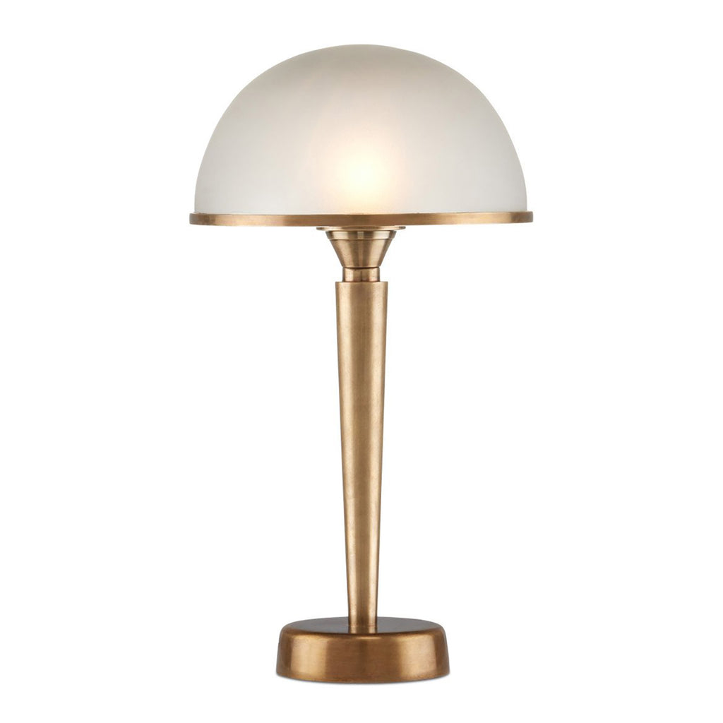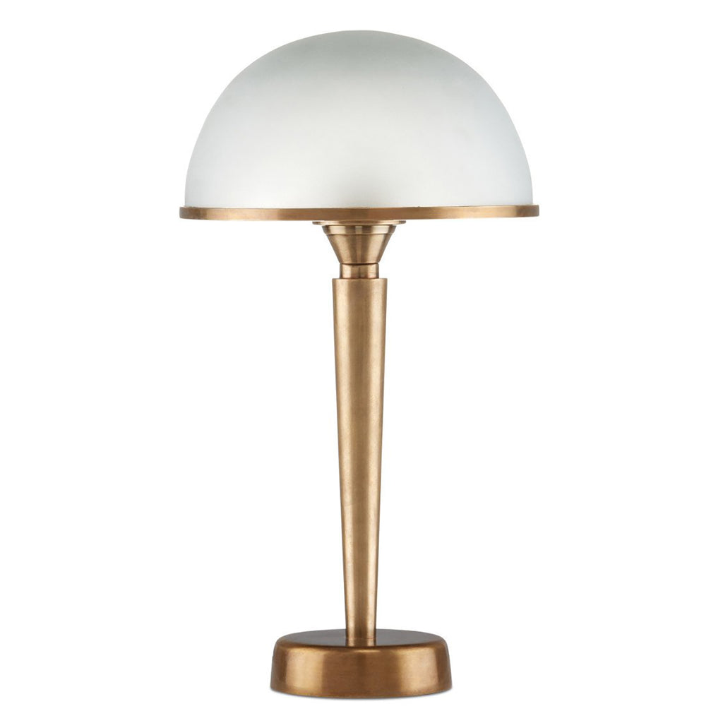 The Currey & Co Gatsby Table Lamp is a time-honored design that was ubiquitous during the heyday of the jazz age. The base, telescoping stem, and rim that holds the frosted glass shade in place are luminous in a warm antique brass finish. The profile is an exemplar of Americana with hints of the Art Deco style popular in Paris during the Roaring '20s.