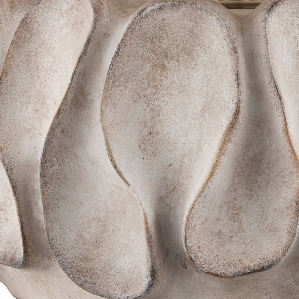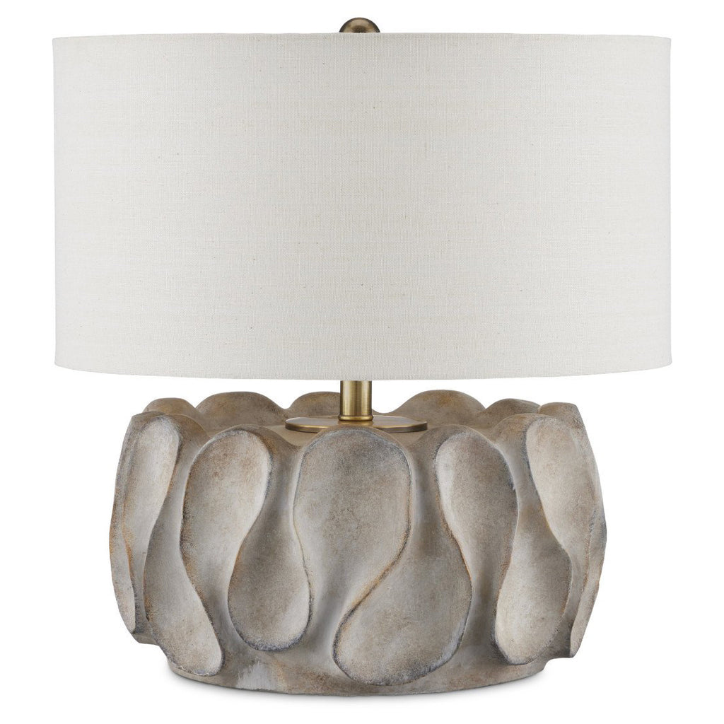 The Weststrand Table Lamp has a flowing shape packed with personality. The spoon-like swells pressed into cast concrete create an artistic statement because they are far from uniform, which adds interest to the squashed shape of the rugged-looking gray lamp. The surface has a wonderful texture to it, and the light antique brass finish on the hardware draws out similar tones along the surface of the cement.