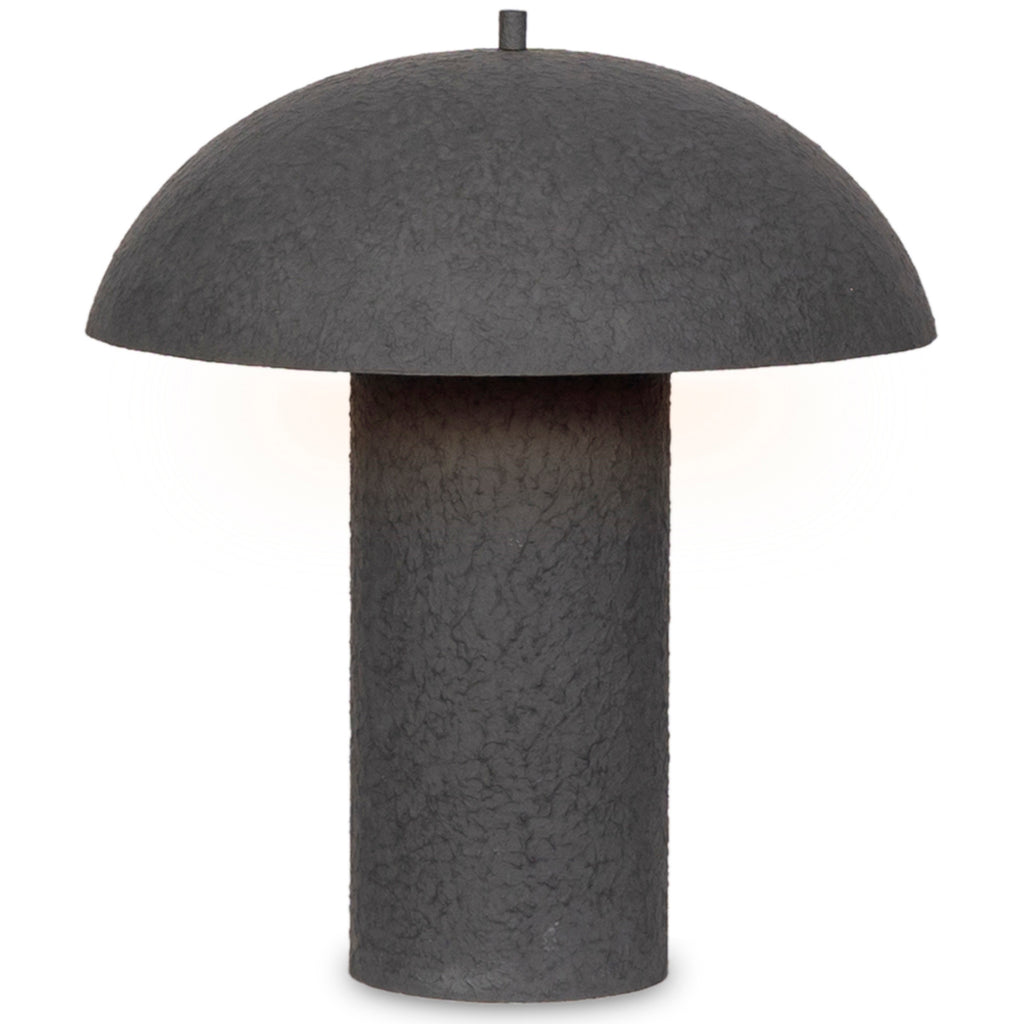 Simple and modern, this texture-inspired table lamp has a black plaster-like finish and modern mushroom-shaped dome for an allover hand-molded look.