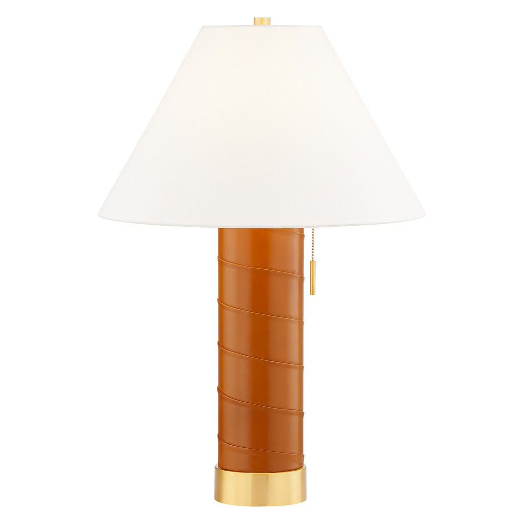 Renowned for built-to-last quality with a timeless feel, Hudson Valley offers a modern lighting collection with elegant touches, recalling vintage inspiration. A celebration of heritage, this table lamp is a charming bedside or desk companion. The tactile leather-wrapped body brings a sense of old-world nostalgia achieved through fine craftsmanship. Topped with a tapered white linen shade and finished with an elegant Aged Brass pull switch and base, Norwalk creates a refined lighting experience.