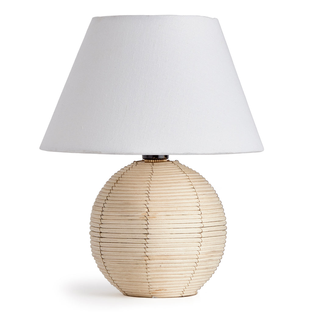 The petite shape and tailored shade make it the ideal lamp for kitchen or small workspace. The natural cane rattan base and linen shade make for a more casual feel.