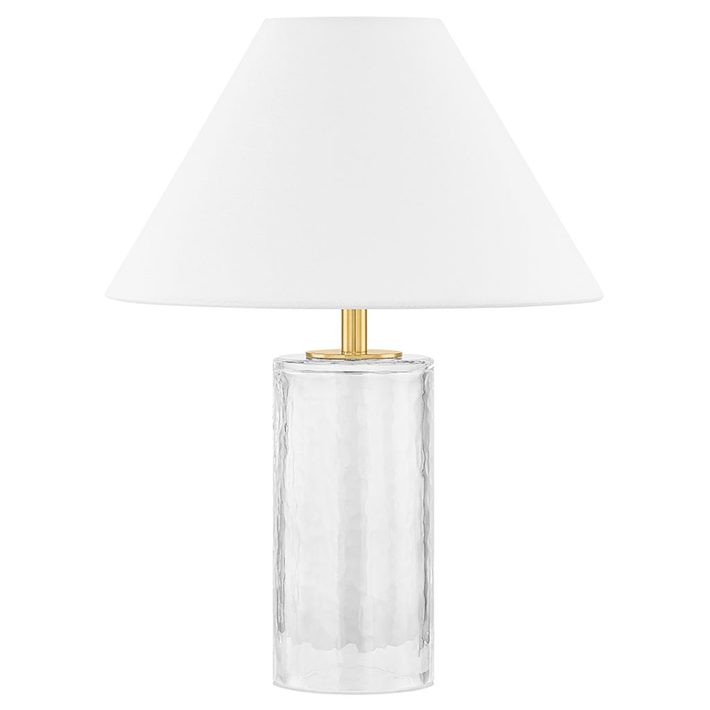 Distinctive yet versatile, this table lamp features a clear-blown glass base teamed with a conical white linen shade. The petite proportions and tailored silhouette make Mitzi Mandy well-suited to a number of spaces. Balancing the icy appearance of the glass, an Aged Brass neck finishes the lamp on a warm note. Part of our Megan Molten x Mitzi Tastemakers collection.