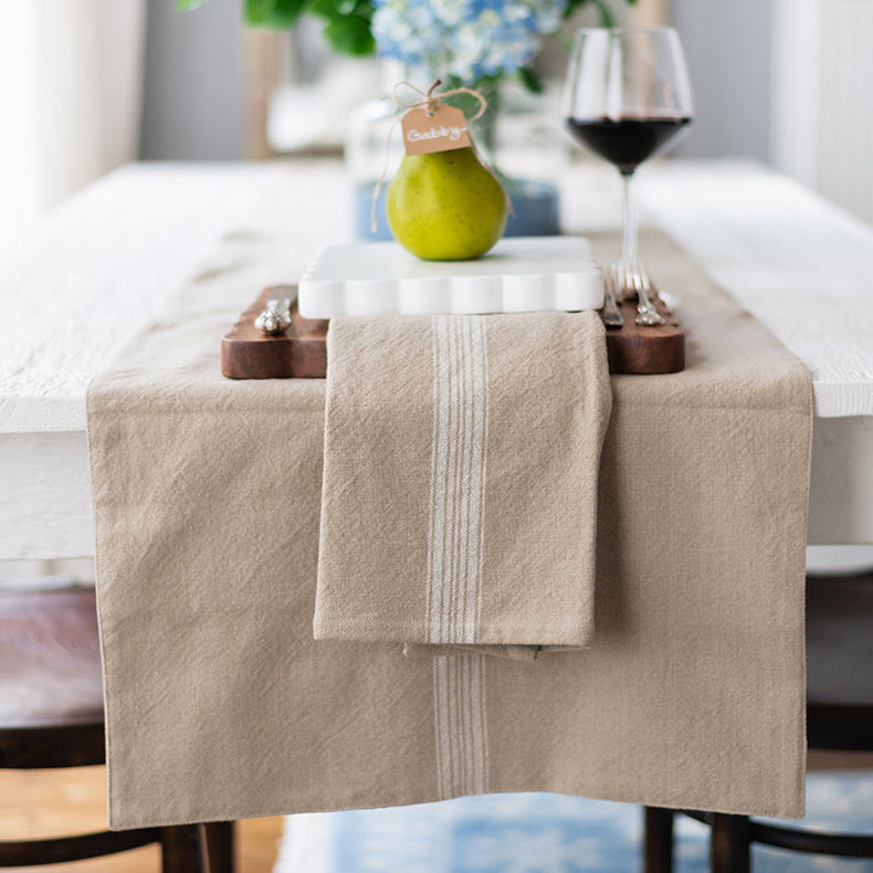 A seamless fusion of heritage and modernity, the French Bistro Collection is designed for those with a discerning eye for both style and substance. Crafted from 100% premium cotton, this table runner is luxuriously soft yet durable for everyday use. The signature striped motif—an homage to traditional Provençal textiles—lends a refined yet understated vibrancy, elevating any kitchen or tablescape with a touch of je ne sais quoi.