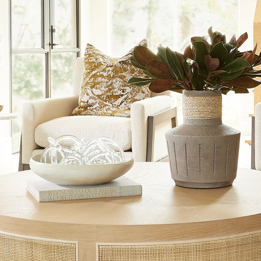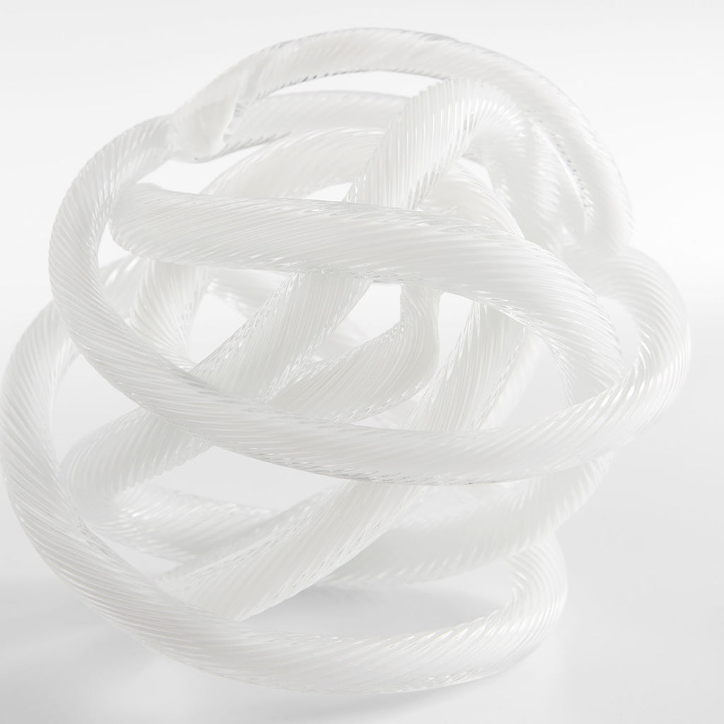 Interlaced luminous glass impresses with an objet d`art feel. One or more of these extra-large white spheres will add brightness along with a three-dimensional focal point. Place in a decorative bowl or upon a bookcase shelf to add an artistic touch.