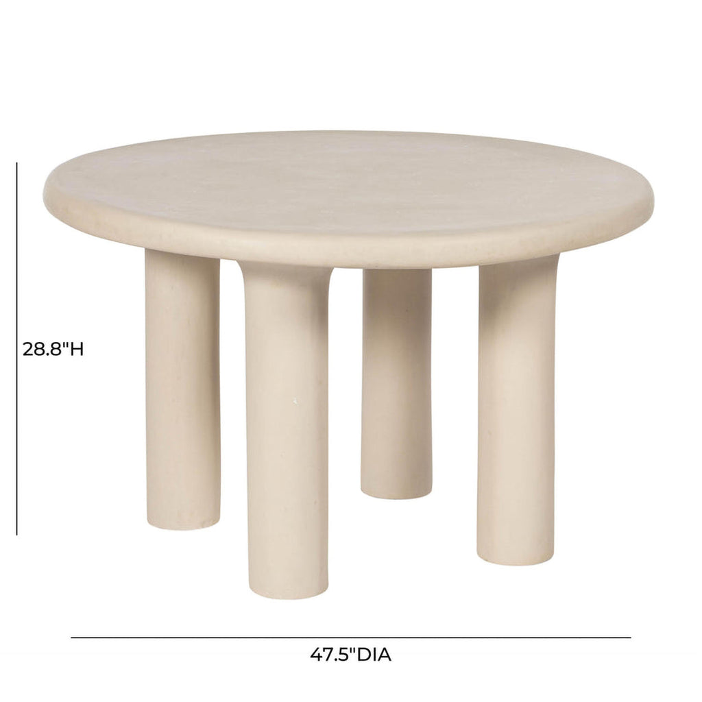 The Barbara Cream Dining Table blends organic texture with modern versatility, crafted from lightweight FRP for a natural look that is both durable and stylish. Perfect for indoor or outdoor spaces, its 47" round design sets the scene for effortless dining anywhere.