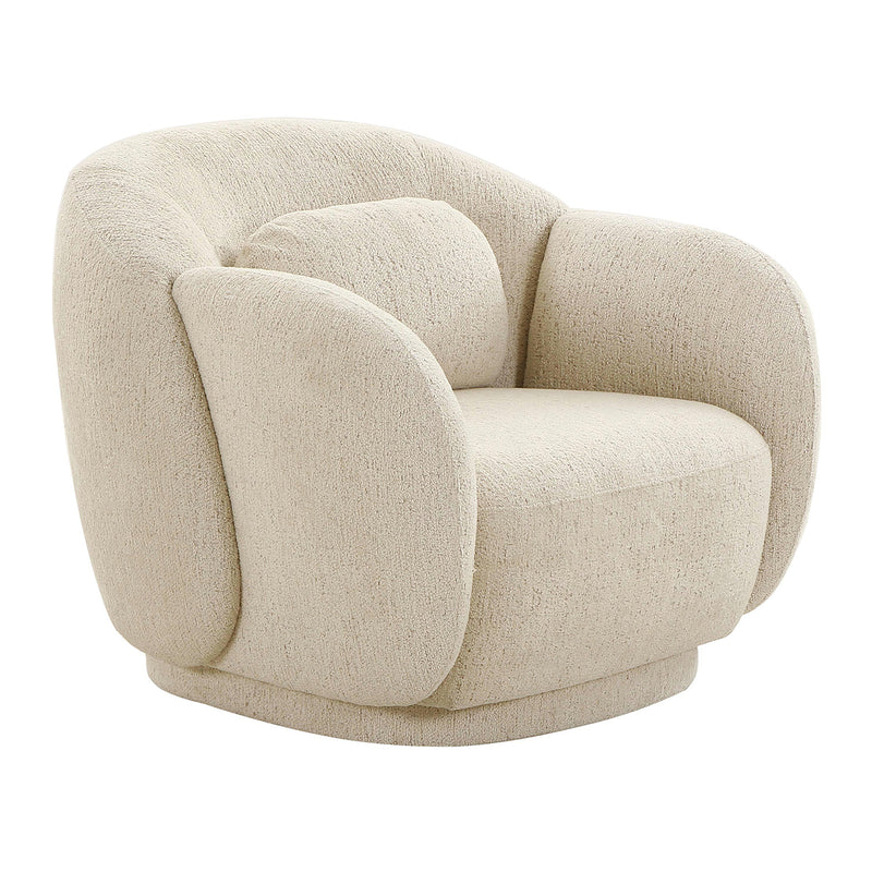 Introducing Misty: It doesn't get cozier than this mid-century inspired design, topped with coordinating pill-shaped pillows and upholstered in a delicious cream boucle!