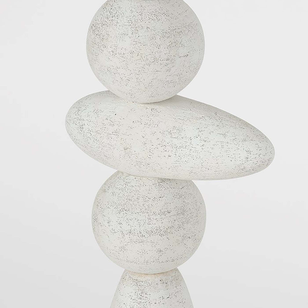 Based on a sketch by Chandler McLellan, the Troy Lighting Cullen family explores silhouettes inspired by the beauty of Scottish dry stone construction. The dry stone technique appears rugged, yet it requires a precise understanding of balance. To give the Cullen floor lamp this sense of organic tension, some of the ‘stones’ are intentionally placed off-center. The elongated totemic profile of the sconce is framed by a metal circular backplate, adding an element of contrast to the monolithic design. Part of our Chandler McLellan collection.