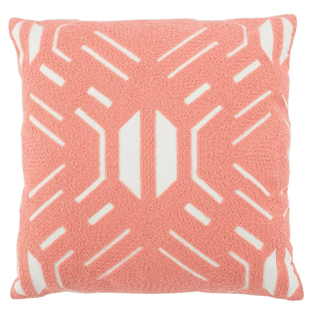 With a carved geometric pattern, this artfully designed throw pillow flaunts enticing textures in blush colored 100% cotton. A handy zipper on the back cover allows for easy-access, no-fuss care and cleaning.