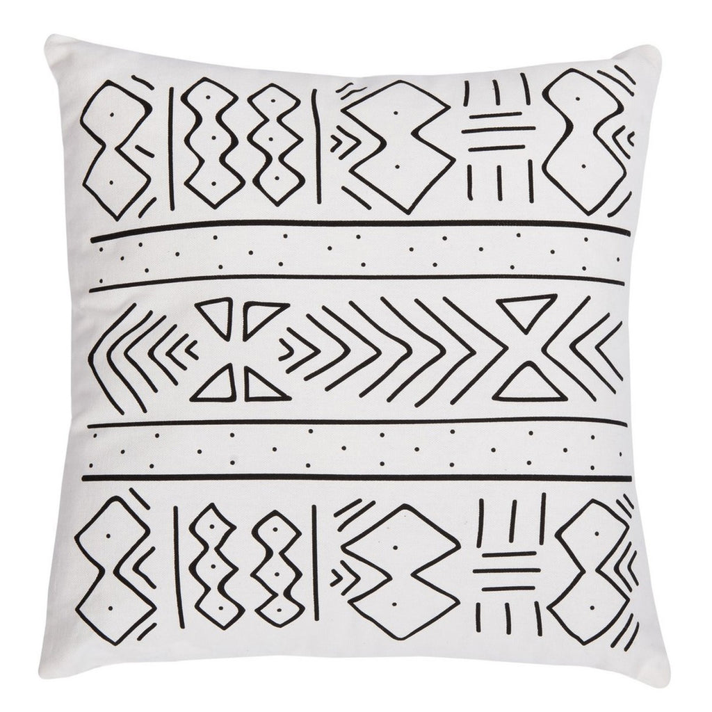 Inspired by the artful aesthetic of ancient carvings, this accent pillow flaunts boho-chic character. Made using White 100% cotton fabric for lasting comfort and crisp Black detailed designs.
