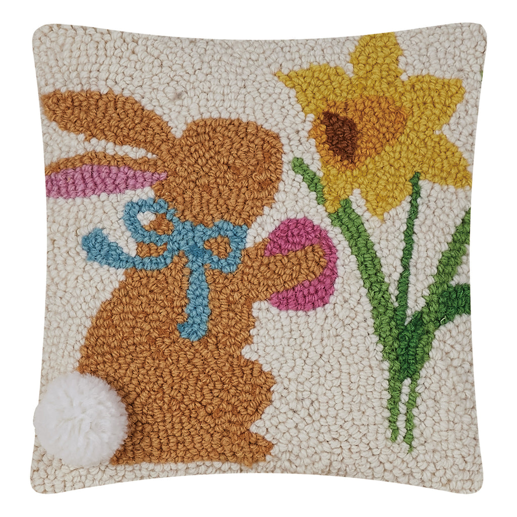 Rabbit Pom Pom Tail with Flower Hook Throw Pillow