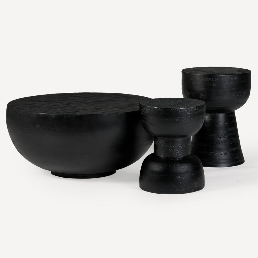 Modern and primitive in form, the Hewn occasional table is crafted of solid plantation grown hardwood. It is then sculpted and textured by hand, giving it its distinctive and expressive hewn finish, making each piece unique.