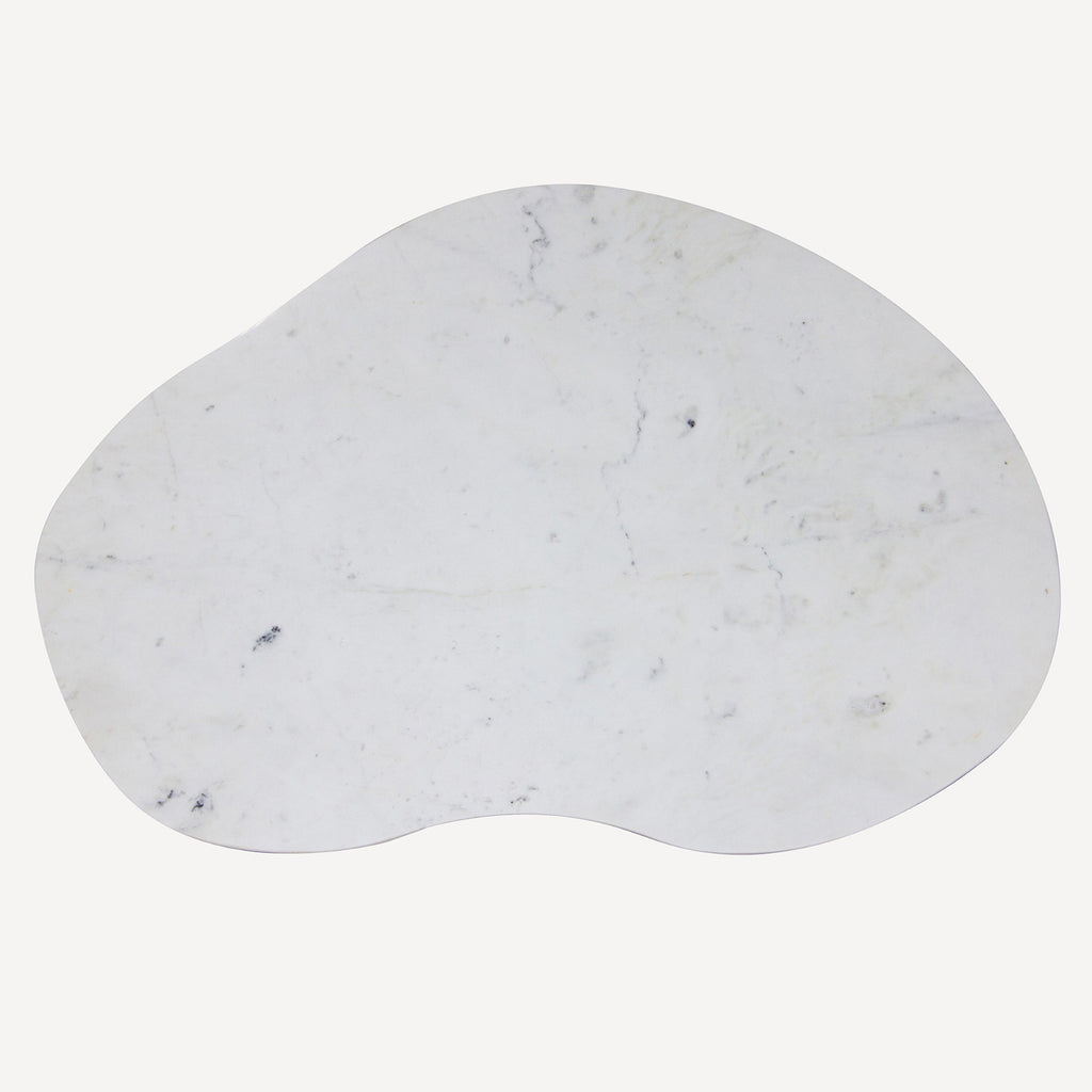 Organically shaped, the Kidney coffee table features a beautiful Banswara marble top and an electroplated mild steel base with a brass finish.Disclaimer: White Banswara is a natural material and may vary in color and texture.