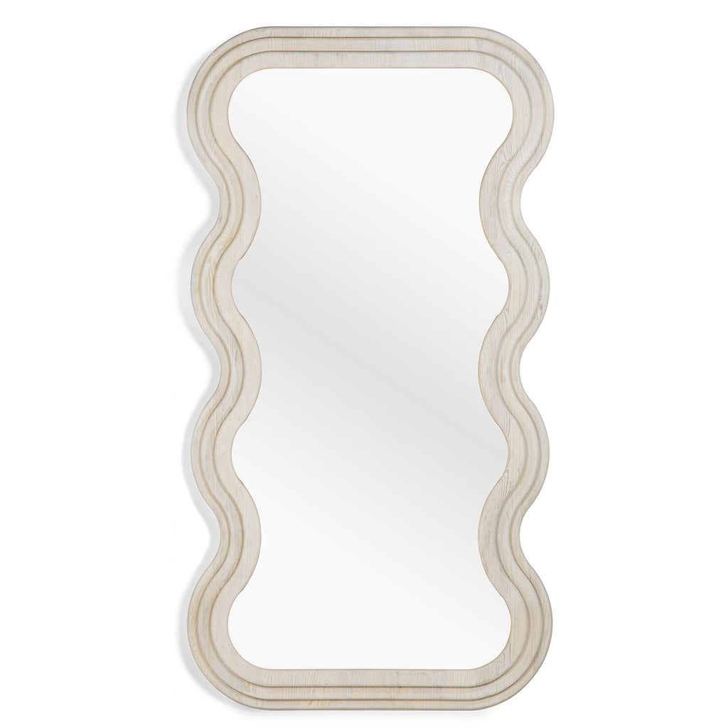 The dramatic Union Home Swirl floor mirror adds a touch of graphic whimsy to your home. Framed by a stepped, solid Ash frame with an oil finish, this mirror will brighten your walls with its bold, organic form.