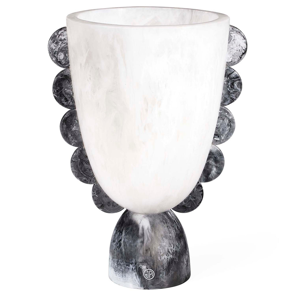 Featuring our mesmerizing twist on classic black and white, our oversized scalloped urn is the attention-getting anchor that every modern tablescape needs. Our Mustique vessels pair dimensional tones with bold Memphis-y geometrics. Each piece is hand-poured to create a unique marbleized finish, then polished to luminous perfection. Style them together to create a monumental moment.