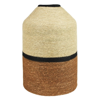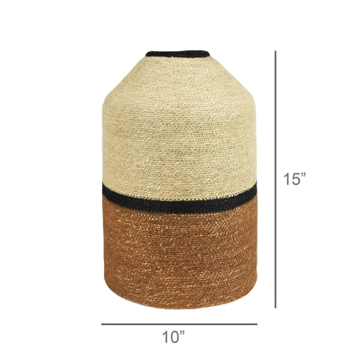 This earth-hued seagrass woven urn is stitched with cotton to offer an understated shape and size that is designed to add style and function to the home.