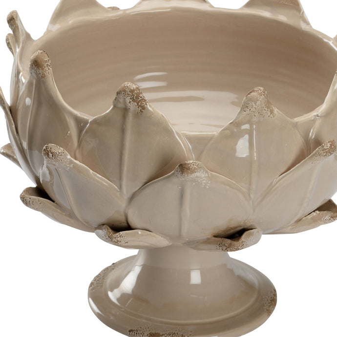 Create a centerpiece for your table by adding a dried arrangement, fruit or decorative orbs to this contemporary bowl. Leaf Vase is a worn glazed porcelain artichoke design with a pedestal base that is adaptable to any design style.