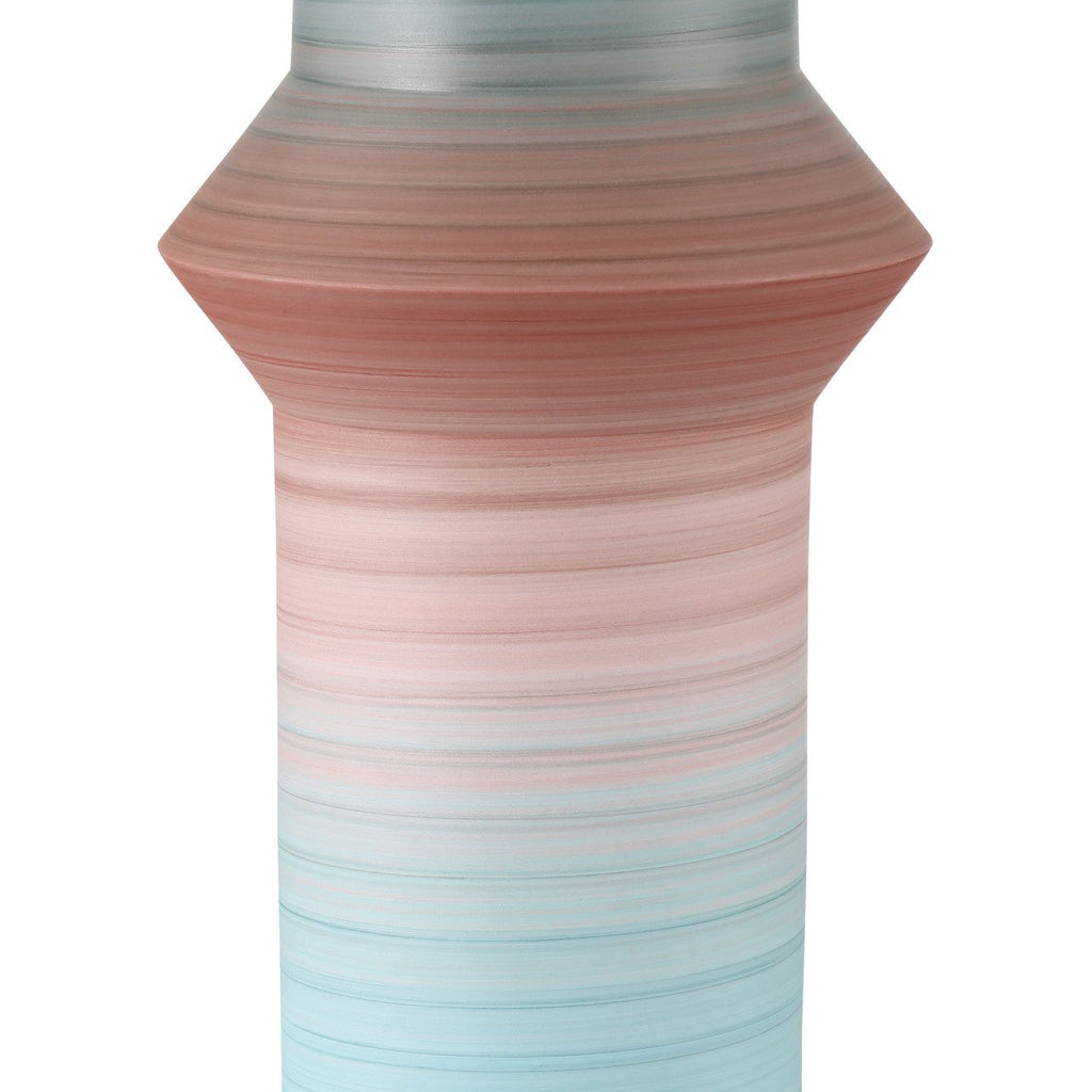 The Happy 80s Red & Yellow Vase Set is a throwback to the decade when bold, vibrant, and eclectic ruled the stylistic spectrum—from interior design to fashion. Made of porcelain, the glazes on the exteriors of these vessels will vary because they are applied while the vases are spinning. This brings the two works of art a textural feel. The insides of the vases are covered in a black glaze and the shapes of the vases reflect the nuances of the decade after which they are named.
