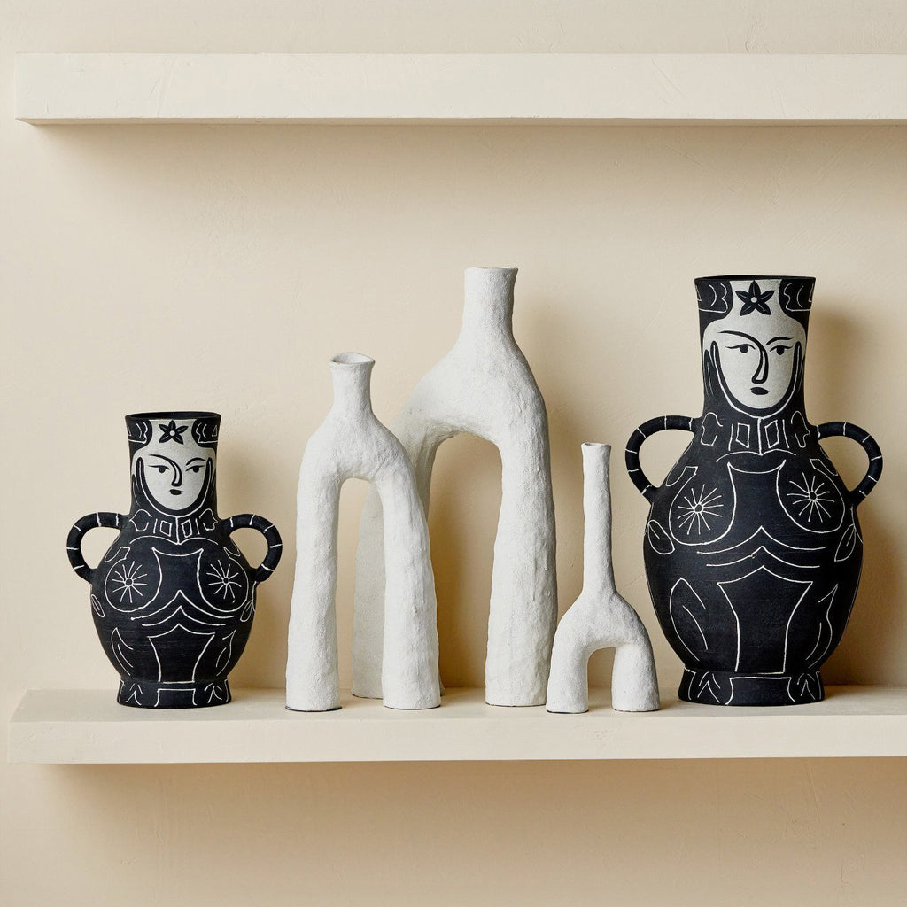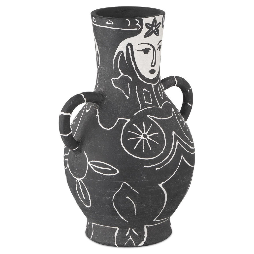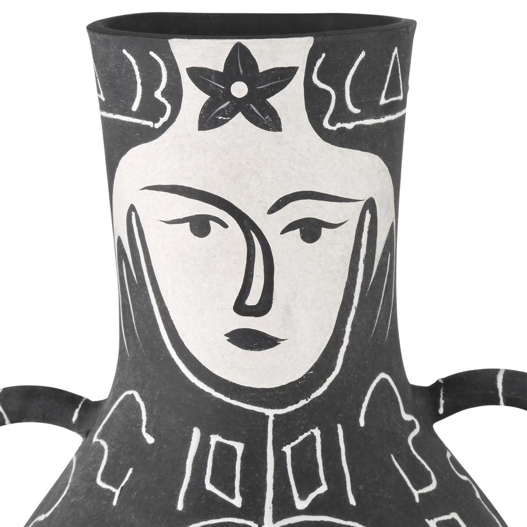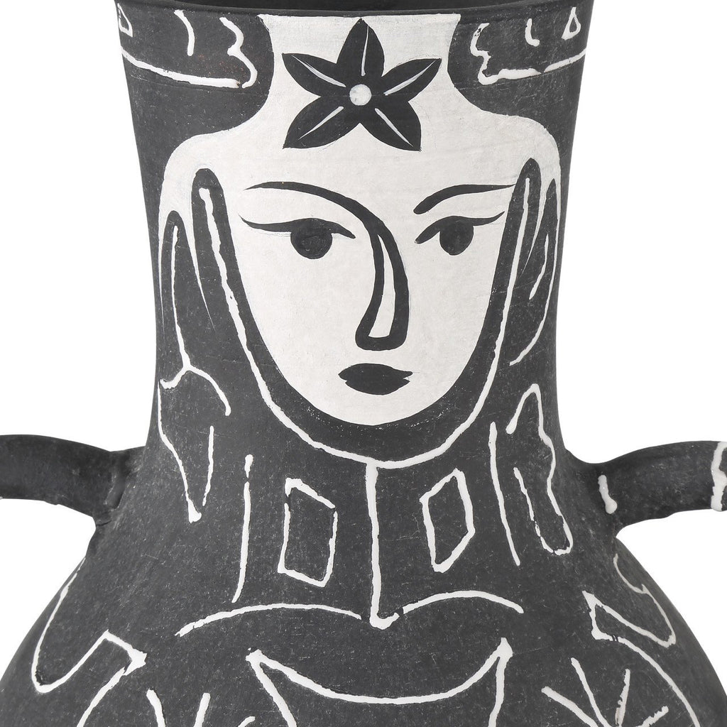 Inspired by the development of 20th-century art pottery during the 1940s, the Saint-Paul-de-Vence Vase is a nod to the great design experimentation going on at the time. This interpretation of that burgeoning creativity is made of terracotta that has been glazed in a matte black, over which the whimsical figure has been hand-painted in white.