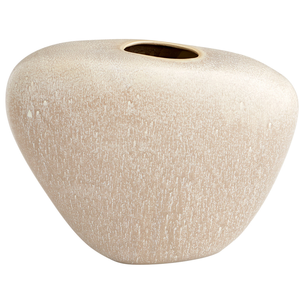 The neutral Pebble vase is a versatile tabletop accessory. This ceramic accent features an olive glaze finish on a portly, round shape. A gradient glaze of soft dots adorns the surface from top to bottom. This unassuming vessel is a lovely accent to any ensemble on its own, or it can be displayed with floral arrangements for next-level styling. Enhance your living room or dining space ensemble with this charming tabletop vase.