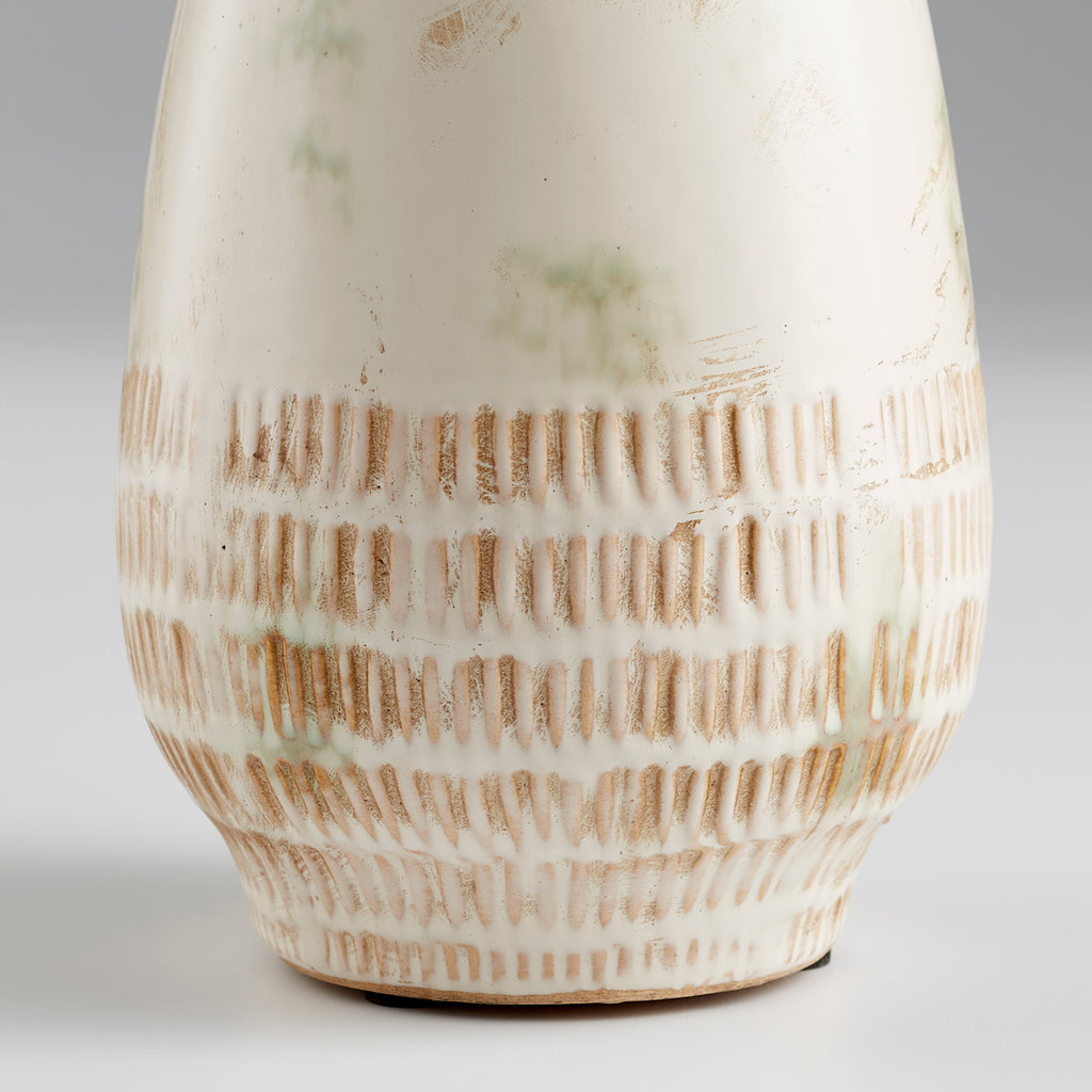 The charming and rustic Yukon tabletop vase is constructed of high-quality ceramic material. This vessel’s unassuming styling is fully embodied by its olive pearl glaze finish and carefully positioned embossed trim surrounding the lower portion of the exterior. A truly masterful work of art, this vase is suitable for both aesthetic and functional purposes, making it an excellent addition for enhancing the ambiance of any residential or commercial design project.