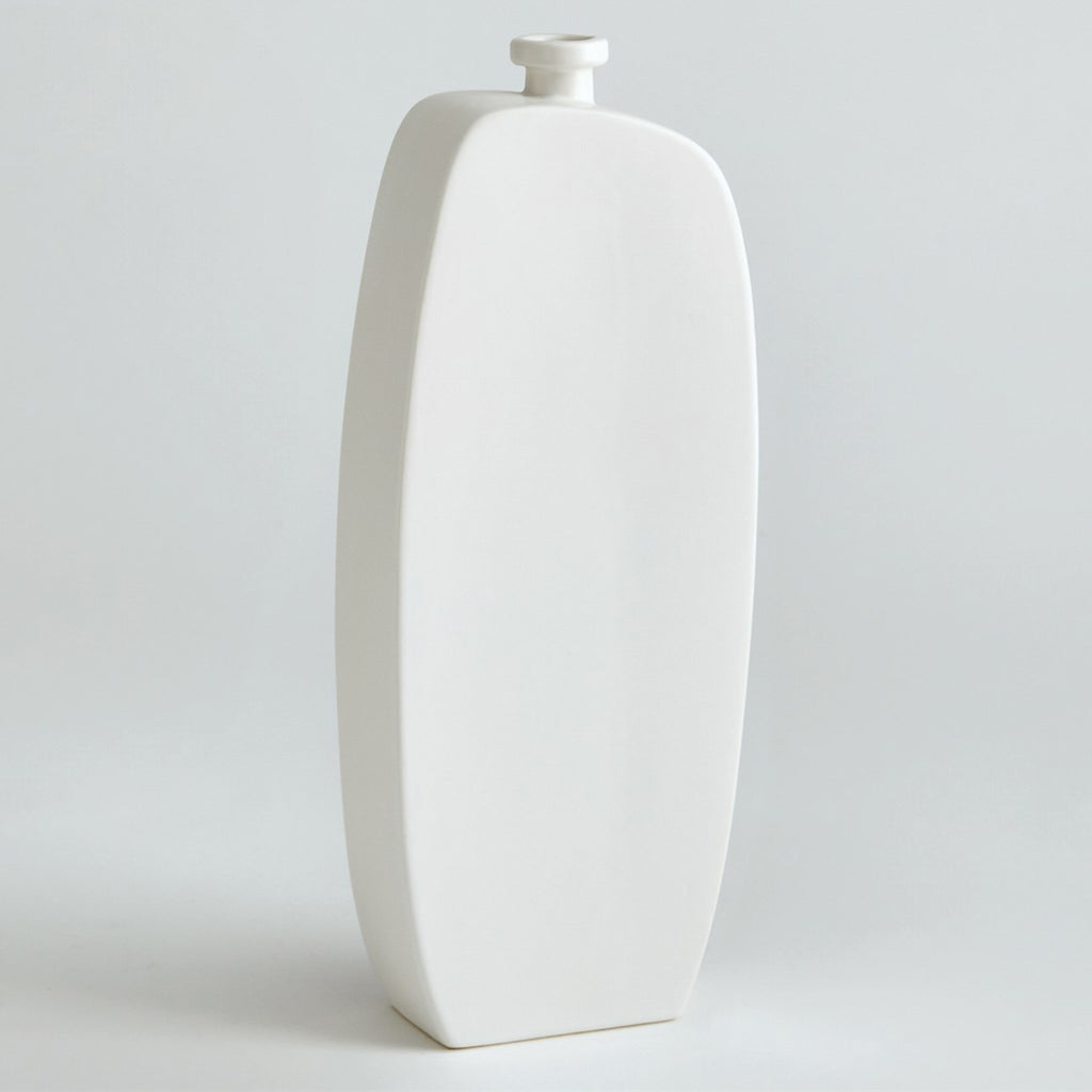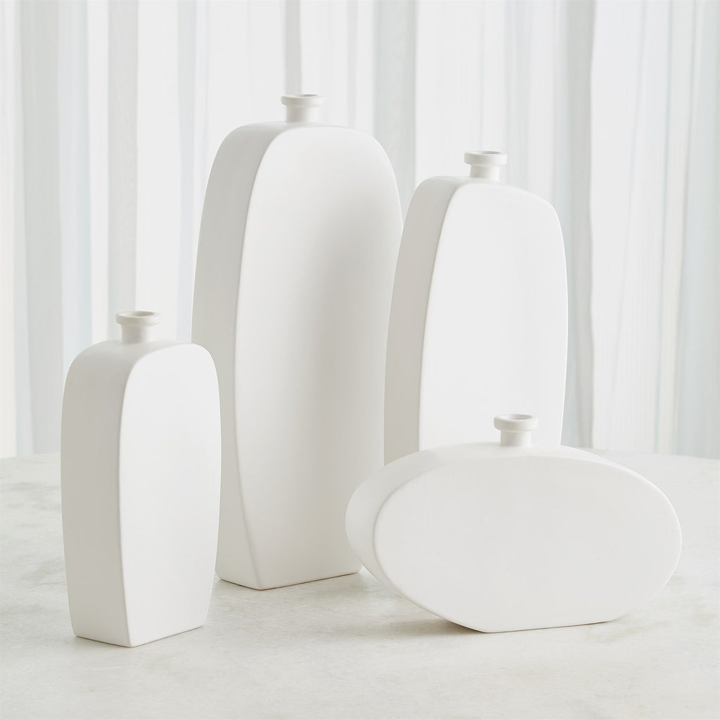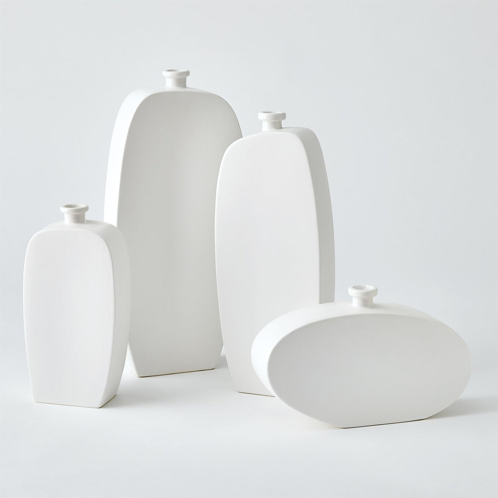 The Bridwell Bottles are made from slip-molded Portuguese ceramic with a sleek matte white finish. Their minimalist design adds modern elegance to any space.