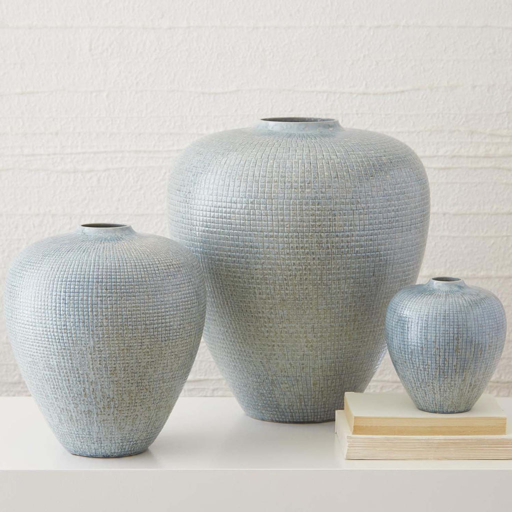 A rich, highly reactive glaze combusts beautifully upon the striated rectilinear pattern of the Check Collection. The Portuguese artisans who create this collection have been devising complex reactive glazes for decades. Their extraordinary skill is rare and unequivocal.