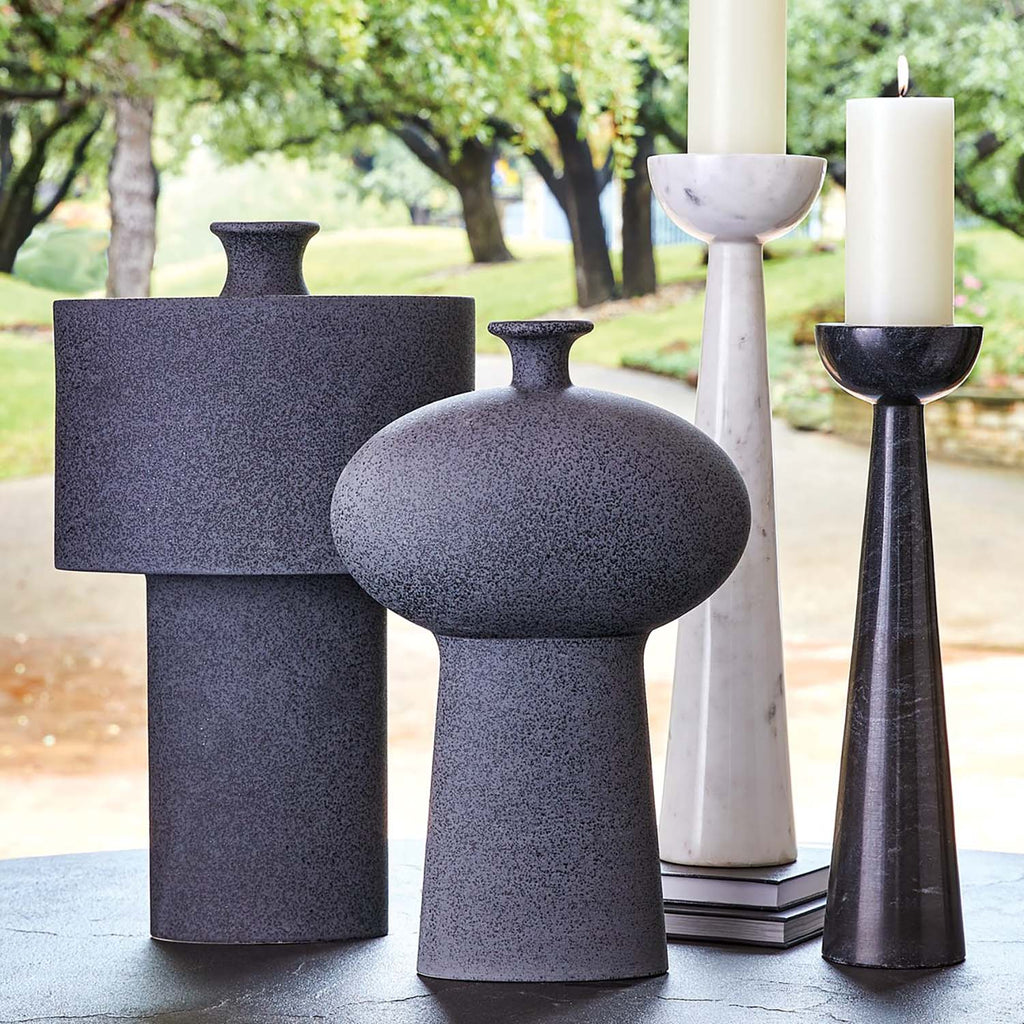 Inspired by the human form, The Global Views Folk Vase is slip cast Portuguese ceramic with a hand-applied glaze creating a marbleized effect. Each vase is unique.
