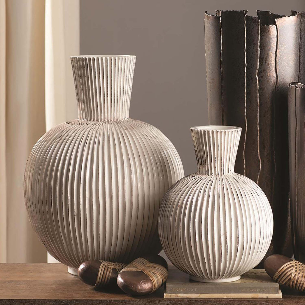 Light-catching crisp ridges accentuate the spherical shape of the Global Views Furrow Sphere Vases. The original pieces used for making the molds were hand-crafted by Italian artisans.