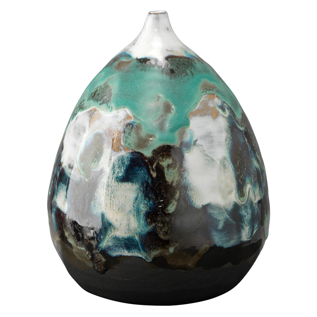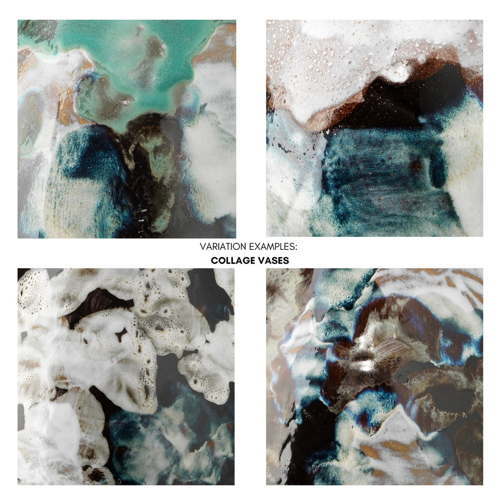 The stunning Collage collection features artisan crafted ceramic vases. They are available in an assortment of sizes and shapes, and each features thick, rich layers of hand applied glaze. The colors are organic and inspired by the earth. Every shade of sand, stone, sea, and sky can be found. True one-of-a-kind works of art, they are beautiful on their own or with your choice of dry filler, try feathers or reeds!