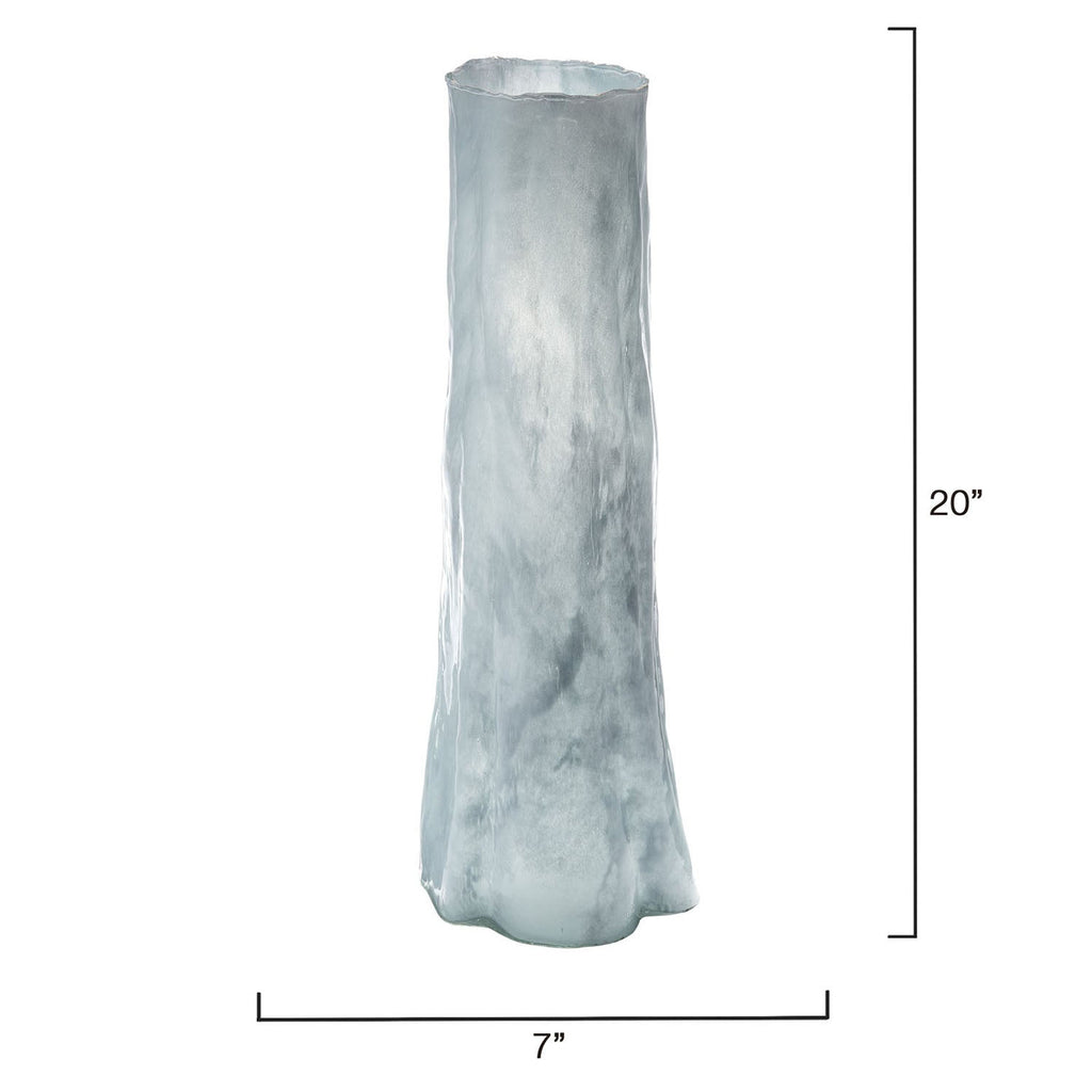 Expertly handcrafted from light blue glass, the shape and nuanced details of this tall vase beautifully evoke the majesty of a single, strong sequoia tree. Its tall and slim design makes it ideal for showcasing long-stemmed florals.