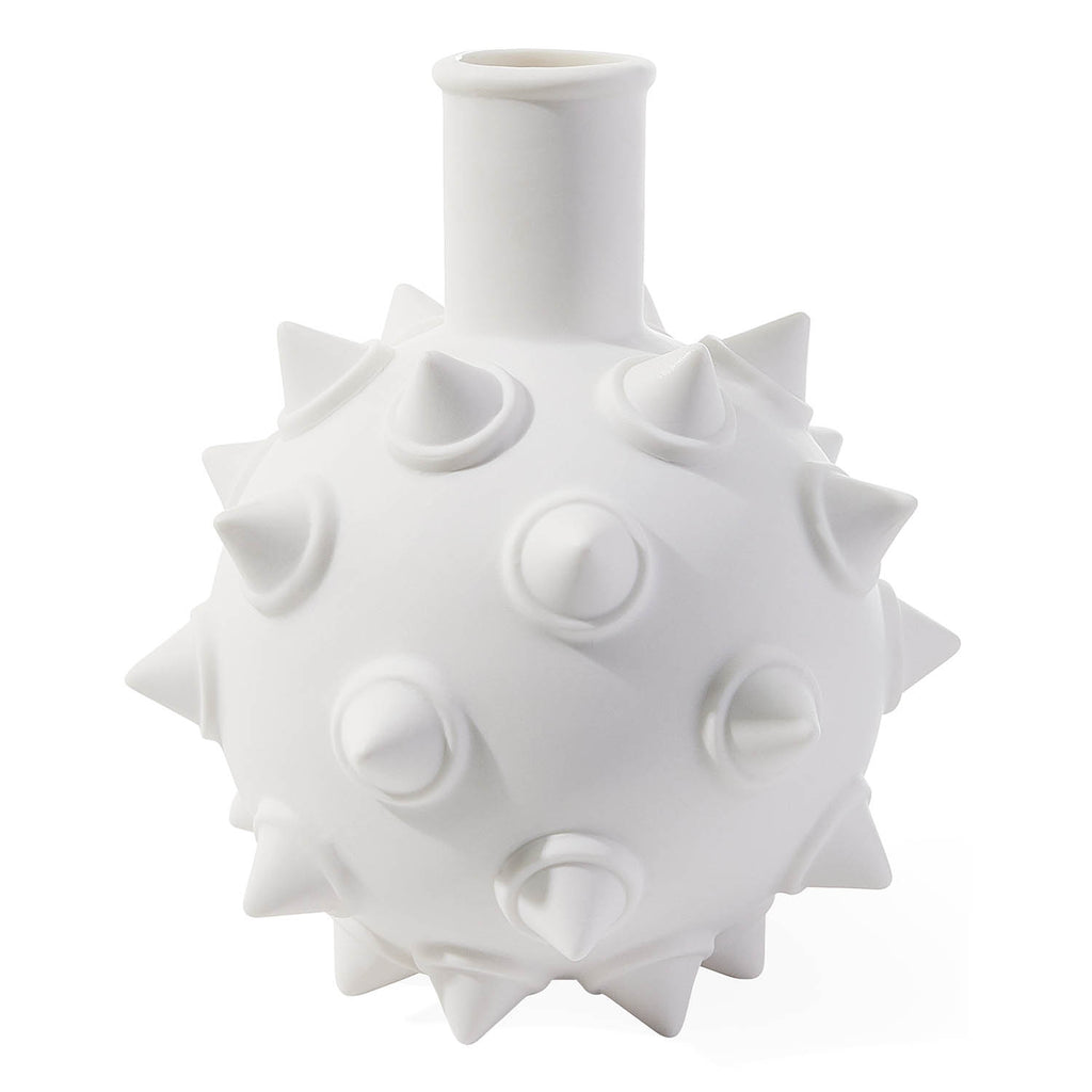 Edgy and elegant at once, our Charade collection features glamorous, thoughtfully hand-carved details cast in the highest quality matte porcelain. Our Charade Bud Vase features a simple silhouette dotted with hand-carved 3D spikes—think punk-inspired glam softened by a posh unglazed finish. The perfect spot for a bright bud to pop.