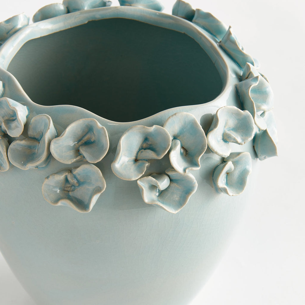The multi-floral design of this vase is truly extraordinary. The sculpted buds are hand-applied and each piece is uniquely finished by a skilled artisan. A show-stopping accent all on its own, or add some faux stems for a little extra drama.