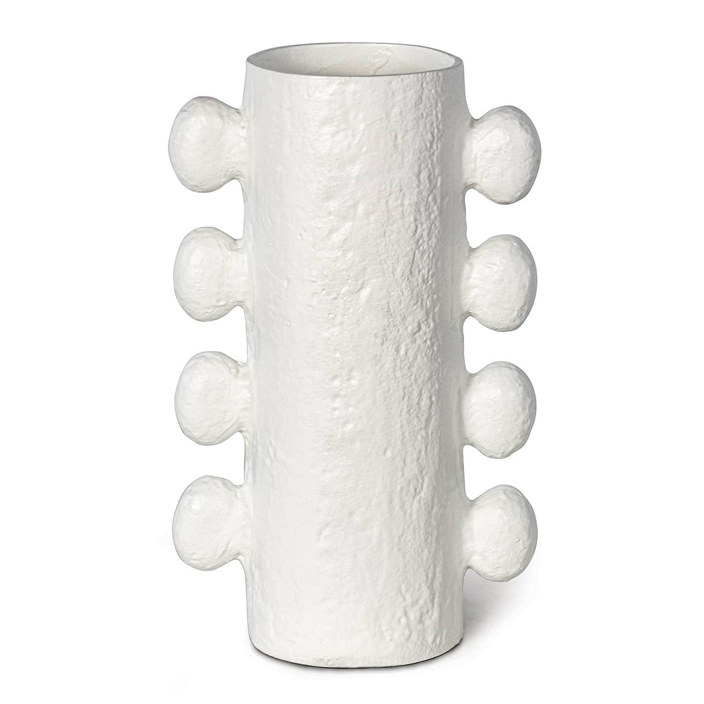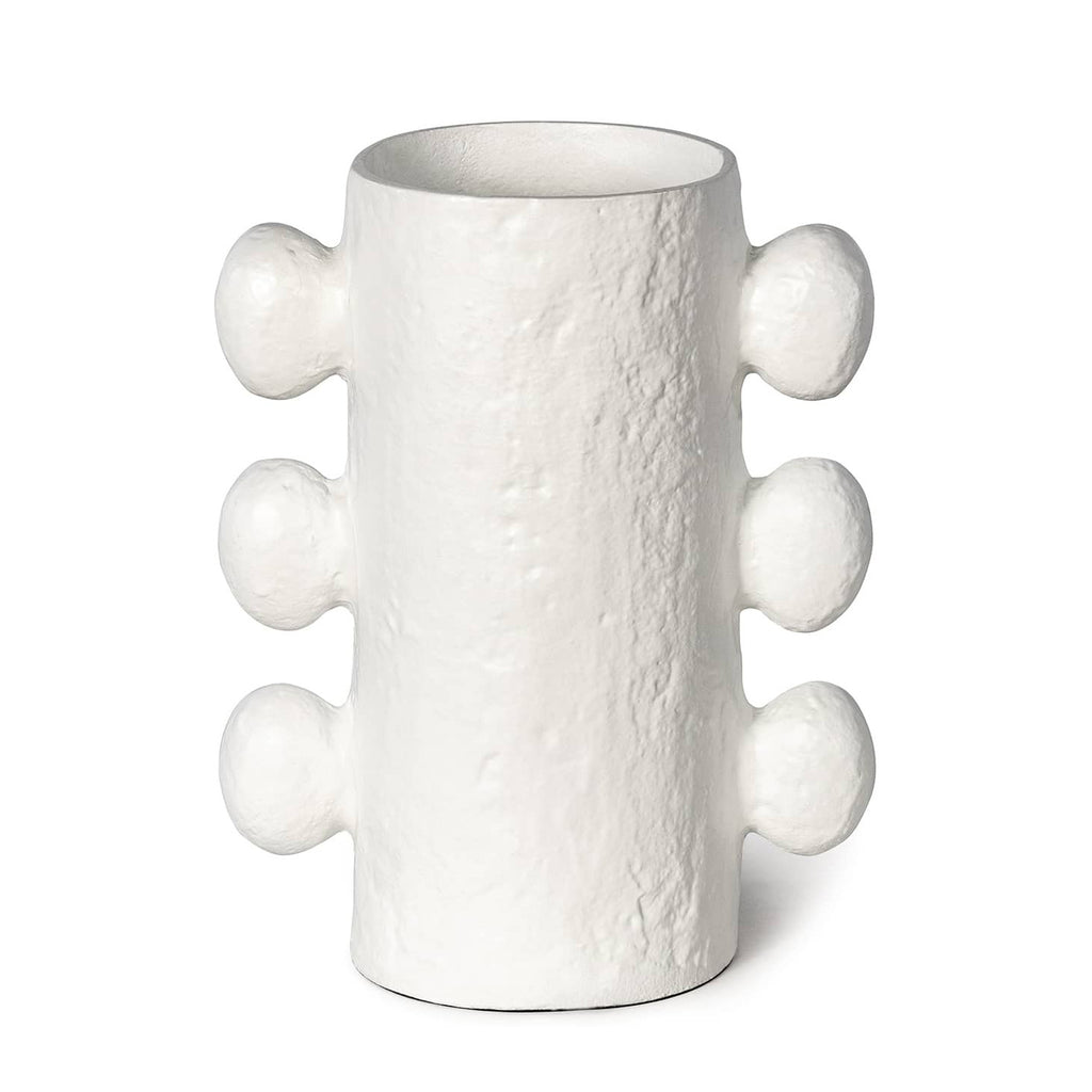The Regina Andrew Sanya Metal Vase is rich with primitive, sculptural beauty. Sanya's matte white, paper maché finish is the perfect match for a modern space with natural elements. Place Sanya in an eclectic living room, boho bedroom or anywhere a bit of bold, hand-crafted style is needed.