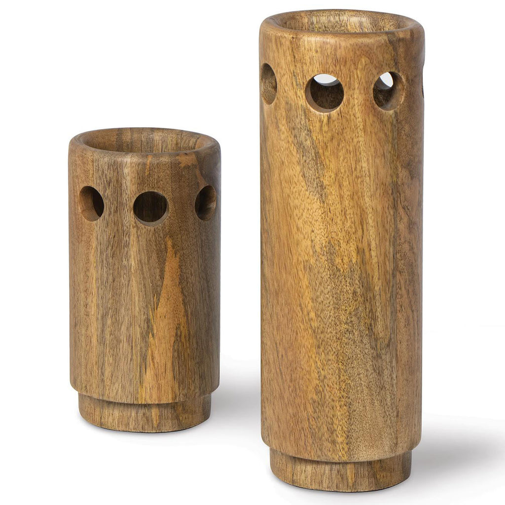 Perfect for any occasion, this vase set is as sleek and stylish as it is sustainable. Easily arrange this set to create a modern centerpiece with a multi-level look. Crafted from sustainably sourced mango wood, each piece features a sleek silhouette for a minimalist look that blends well in any space.