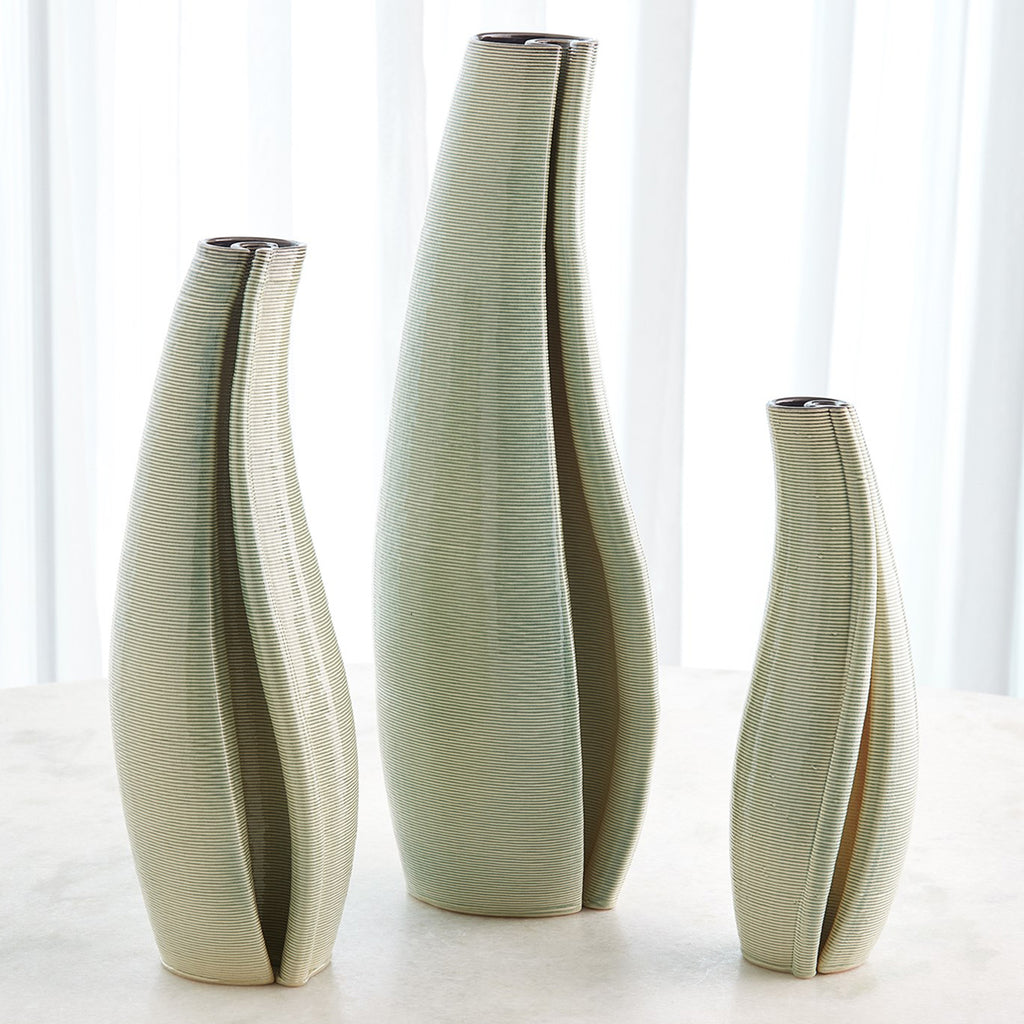 The Rift Vases are created using advanced 3D ceramic printing and finished with a smooth, washed green glaze. Made in Portugal, they combine modern innovation with traditional craftsmanship, bringing a distinctive and elegant touch to any space.