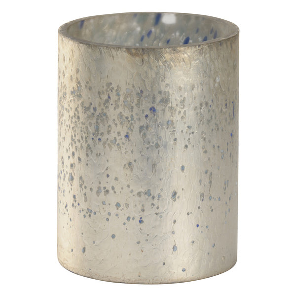 Designed for tabletops and bookshelves in a modern home, sic silver vase features a matte silver finish with shades of blue, cream and teal shining through. Add a votive or floral bouquet to enliven your bedroom, entryway or living area.