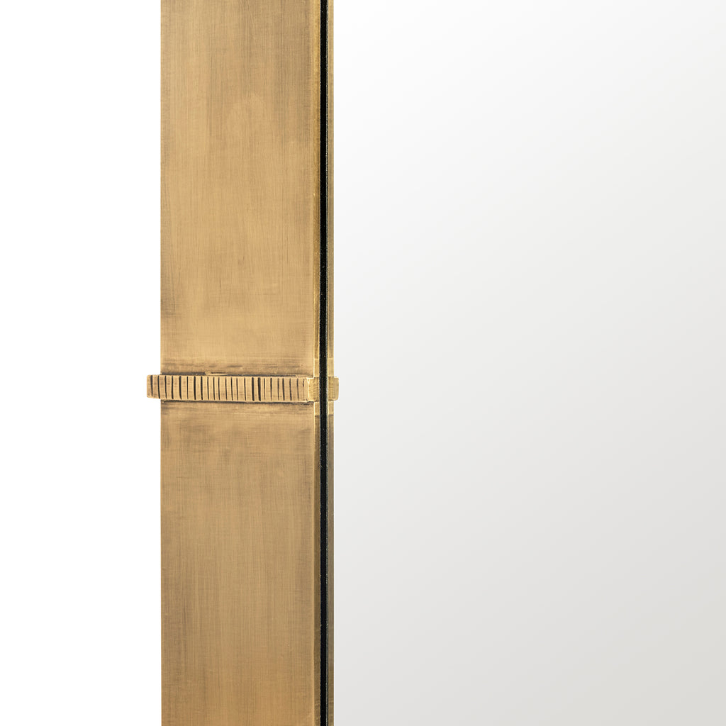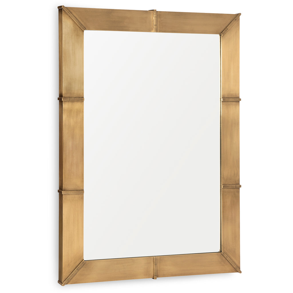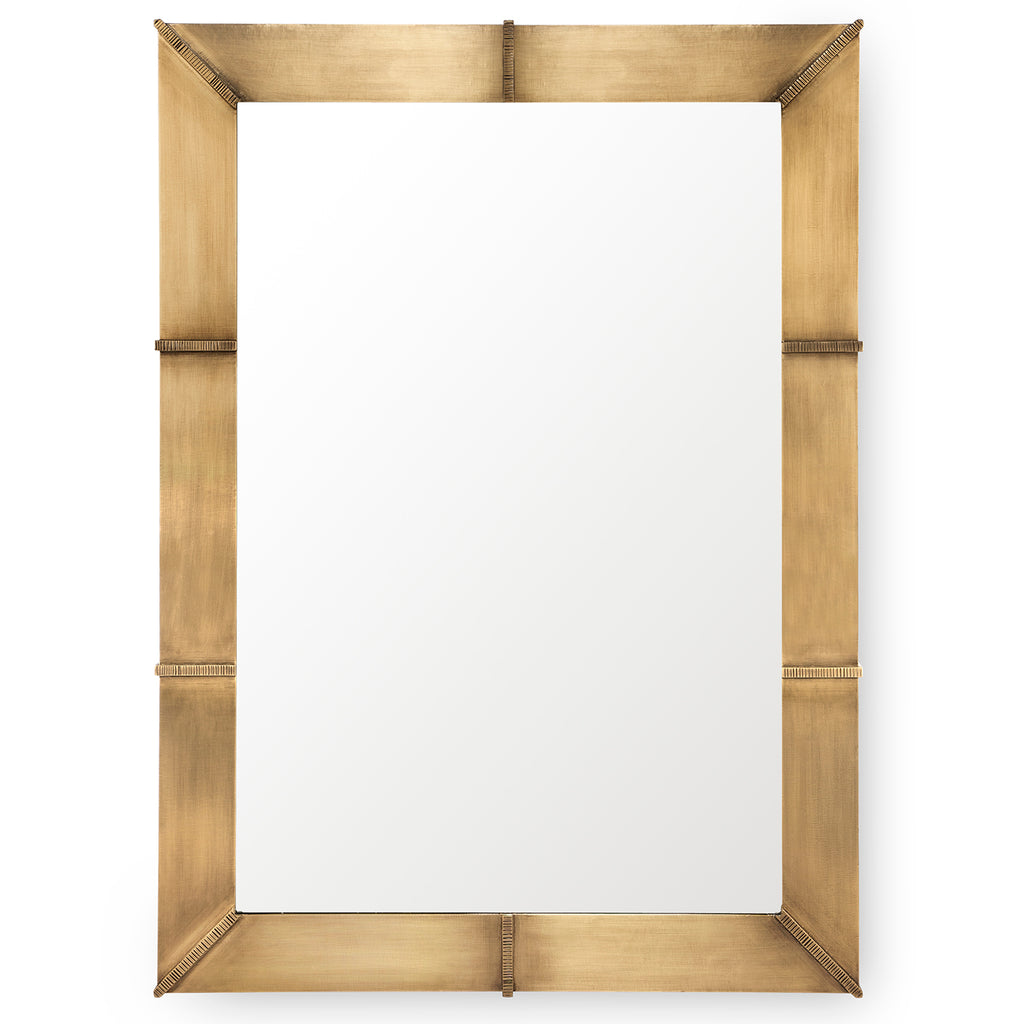 With its broad frame of antique-finished brass, the Villa and House Brea Mirror brings dignified warmth, doubling as a functional piece and a sophisticated accent. A classic rectangular shape keeps the Brea anchored in tradition, as its embellishments of delicate, hand-hammered metallic ribbons speak to the quality of its craftsmanship. The glint of its subtle golden sheen is sure to catch the eye from across the room, instantly drawing you in for a gaze at both your reflection and the fine detailing bordering it. Either hung vertically or horizontally, this piece boasts unparalleled presence.