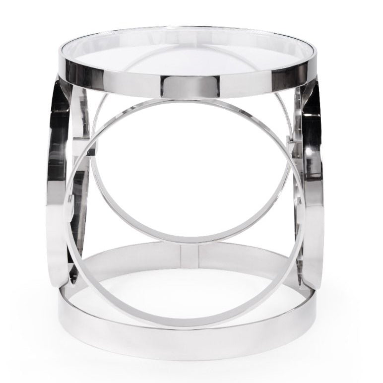 The Stephan Side Table is a playful take on a traditional piece which is usually made in bent cane or bamboo. We've recreated the piece in polished nickel and in brass with an antique finish which imparts a more contemporary and a much more glamorous air. This little decorative table is super helpful in many scenarios. It doesn't crowd: it's airy and open with a glass top. Place two in front of a sofa, flanking a loveseat, or nestled next to a cozy chair in a study.
