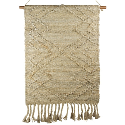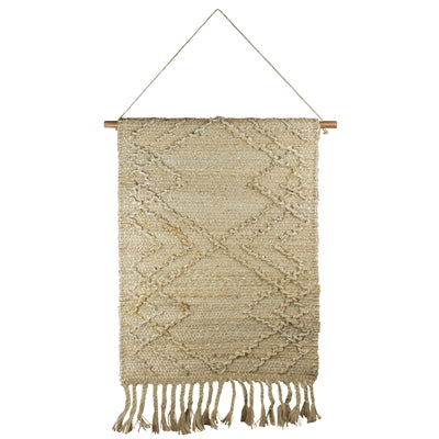 Hand woven of hemp, this wall hanging is warm and earthy. With a subtle woven pattern, the look is dramatic and enunciates the fibers' natural hues.