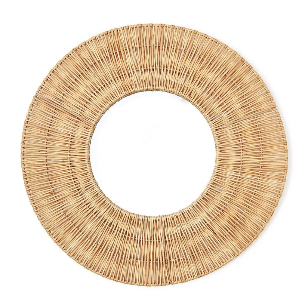 Enhance your space with the charming allure of the Circular Hand-Crafted Wicker Wall Mirror. Hand-crafted to perfection, this mirror boasts a unique wicker design, adding a touch of natural elegance to any room. The minor imperfections and color variations only enhance its beauty. Hang it in your entryway for a warm welcome or in the living room to create a focal point.