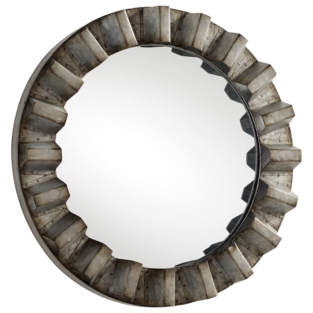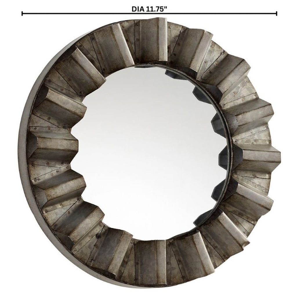 The Argos mirrors feature a rustic, farmhouse inspired look. Boasting a distressed, galvanized finish on a riveted design, this wall hanging decor is of modest size-but with added depth, making it perfect for installing multiples in any hallway, or living room space, with a modern or industrial appeal. Create an artful installation with multiples on a vast-stretching wall space, or hang a single piece over a small accent table for an added touch of bucolic charm.