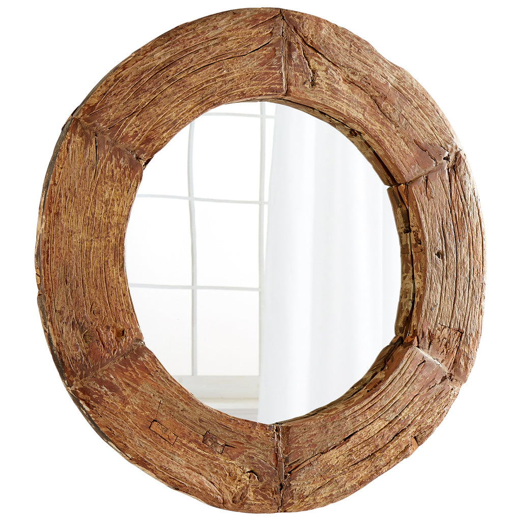 Create a twist on contemporary decor with this circular walnut mirror, great for any bedroom or bathroom. A sleek geometric silhouette is contrasted against rustic wood features.