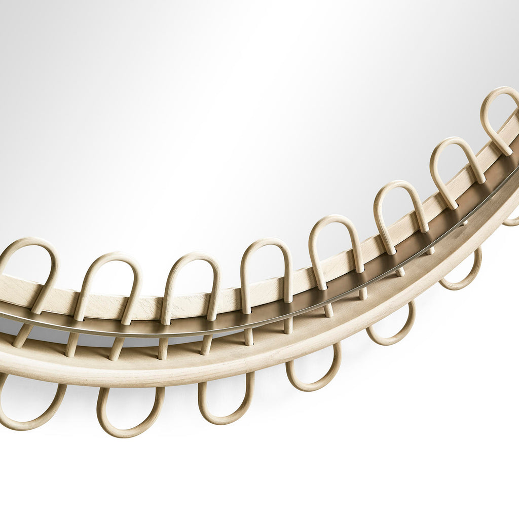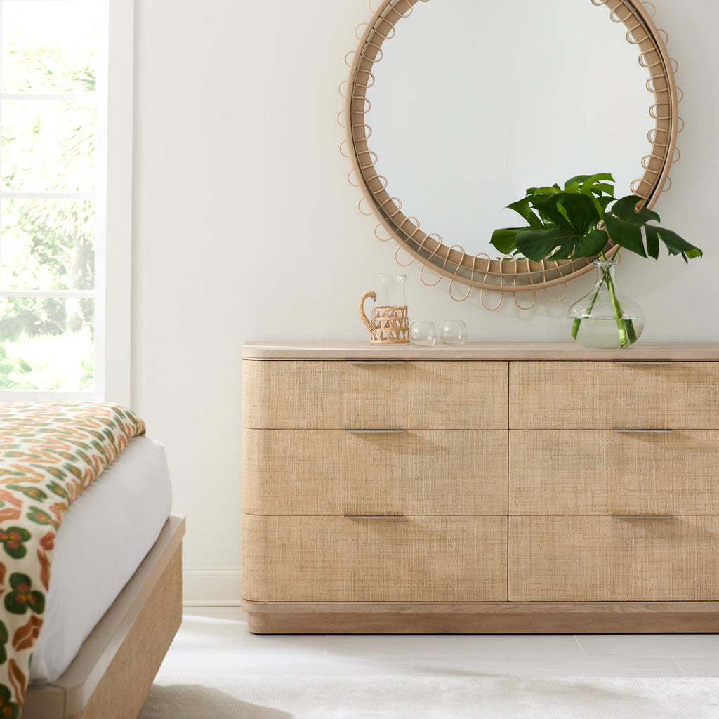 An impressive four feet wide, Jonathan Charles’ Vorticity Mirror demands attention. Featuring Natural Rattan interwoven through a solid hardwood and metal frame, Vorticity creates effortless intrigue and visual appeal in modern spaces and tropical themed interiors.