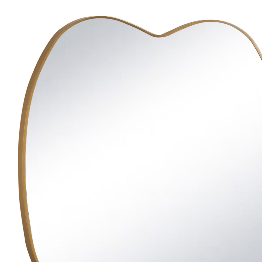 The Mela Metal Mirror: a captivating blend of organic shapes and sleek metal craftsmanship. Its artful design boasts a unique silhouette that adds a touch of contemporary flair to any space. Perfect for living rooms, bedrooms, or entryways, this mirror promises to be a striking focal point, elevating your home decor with its distinct charm.