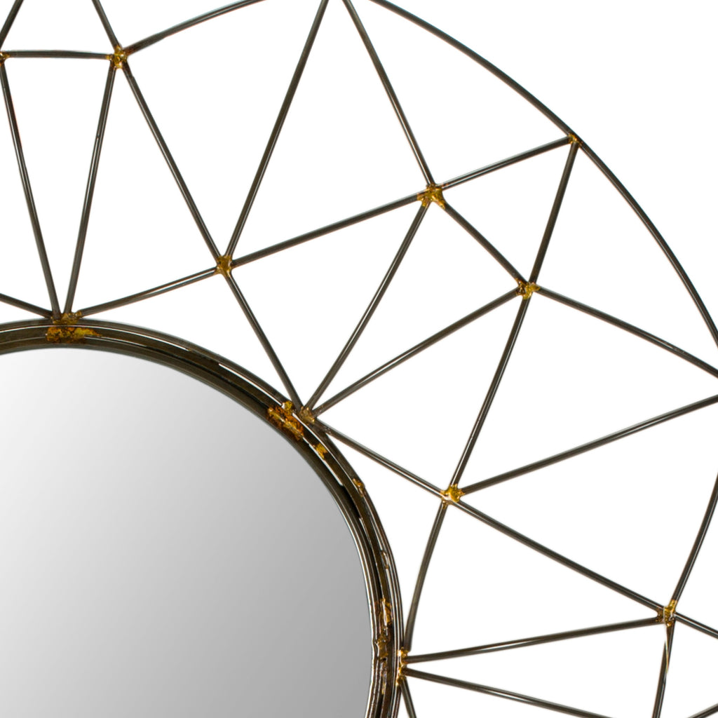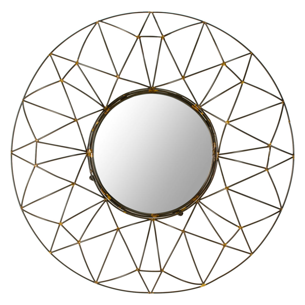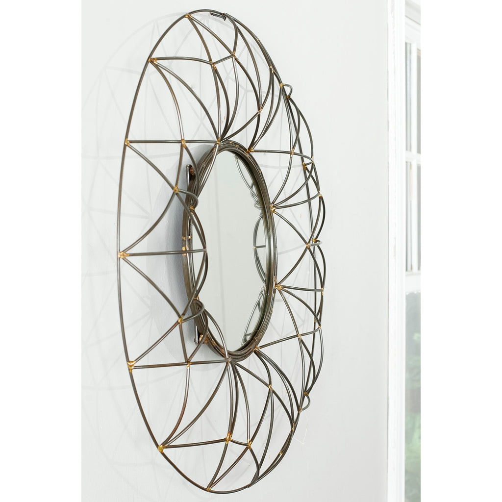 The Sanders round wall mirror turns anyone into a stargazer. The simple, gossamer-sheer geometric shapes and natural coloring of its artisan hand forged iron frame make this a modern masterpiece.
